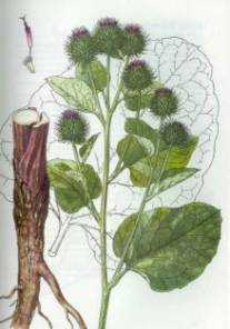 ARCTIUM LAPPA L.- ორწლიანი ბალახოვანი მცენარეა, ნესტიან ნიადაგებზე და დაბურულ ტყეებში გავრცელებული. უყვარს სველი, მაგრამ ქვაღორღიანი მიწები. ჭარბად შეიცავს ტანინებს, გლიკოზიდებს, ეთერზეთებს და მრავალგვარ ვიტამინს.